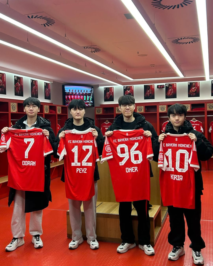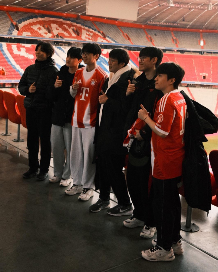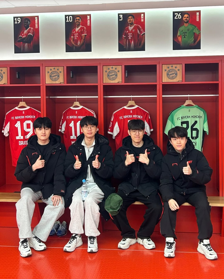 > 拜仁慕尼黑官方分享T1队员照片: T1队员到场